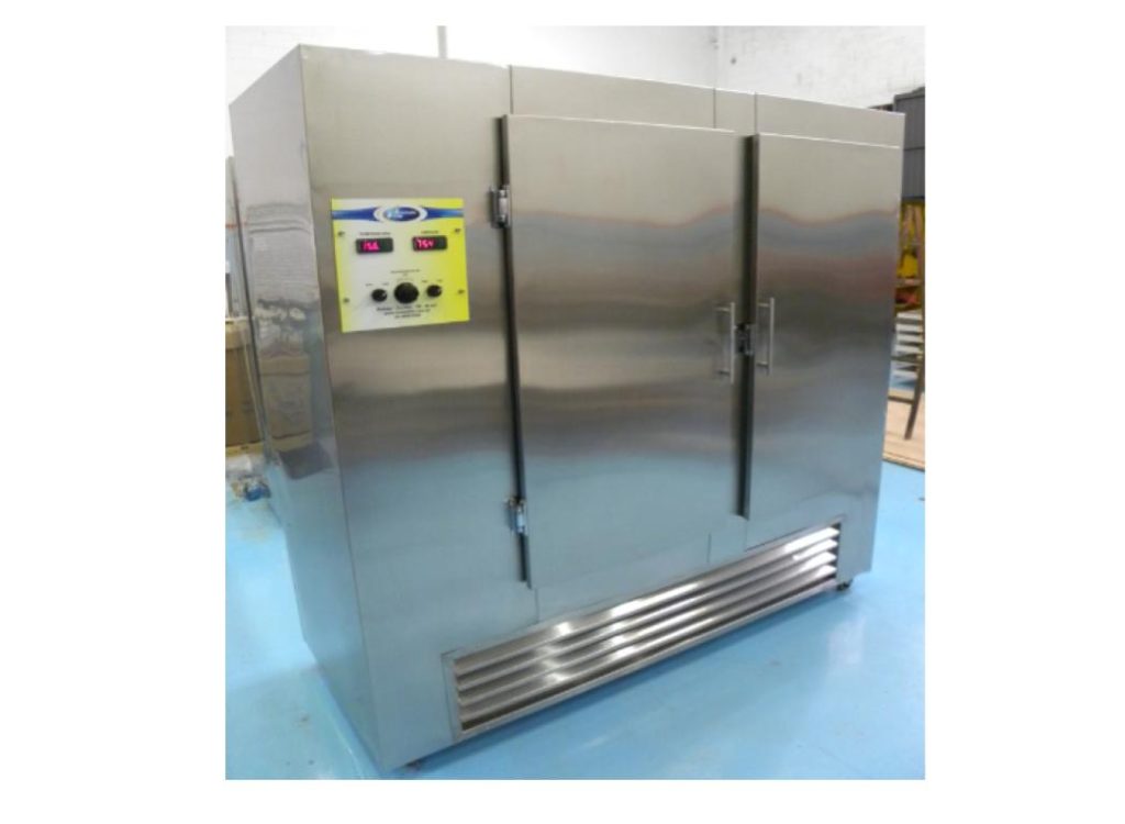 A construção do equipamento é composto por estrutura interna em aço inox com isolamento termico em PIR ( poliuretano autoextiguível).